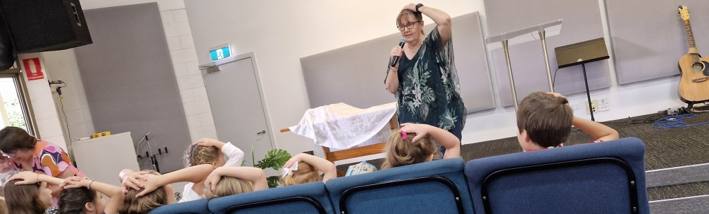 The children start with everyone in the Service. We all sing some worship songs and then the children can sit at the front for a children’s story. After the story they head out to Kid’s Time for the remainder of the service.